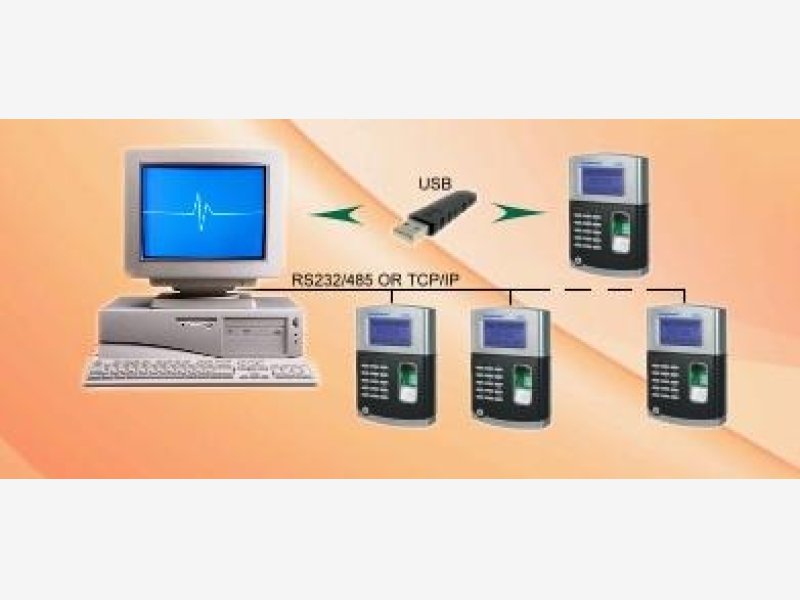 OROLOGIO MARCATEMPO CON BADGE MOD. SVARMES3 dove il dipendente può effettuare la timbratura con l'impronta digitale o la tessera di prossimità. Ha una porta Ethernet TCP/IP per scaricare i dati tramite rete e una porta USB per scaricare i dati con una chiavetta USB. Viene fornito con un software che permette di ottenere i conteggi delle ore lavorate su un foglio Excel altrimenti può essere fornito con un software di gestione presenze che può gestire un calendario mensile di orari con turni di lavoro differenti.