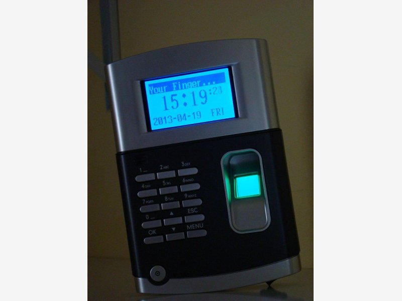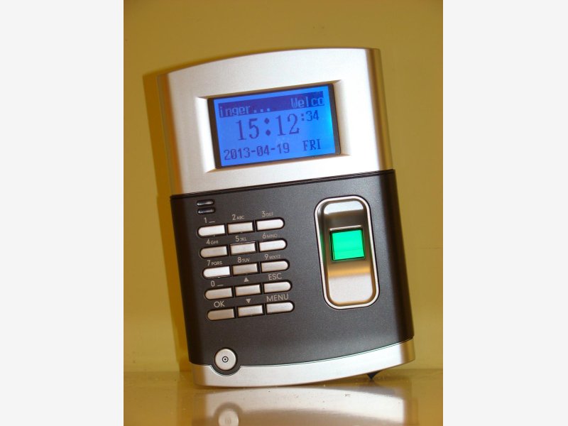 MARCATEMPO CON LETTORE DI BADGE DI PROSSIMITA' E LETTORE BIOMETRICO DI  IMPRONTE DIGITALI MOD. SVARMES3 CON 50 TESSERE DI PROSSIMITA'