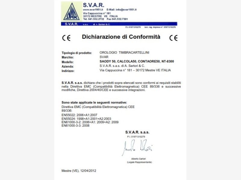 Per ulteriori informazioni su questo orologio marcatempo usato, clicca sul link: editorcms/file/SAODY50(1).pdf