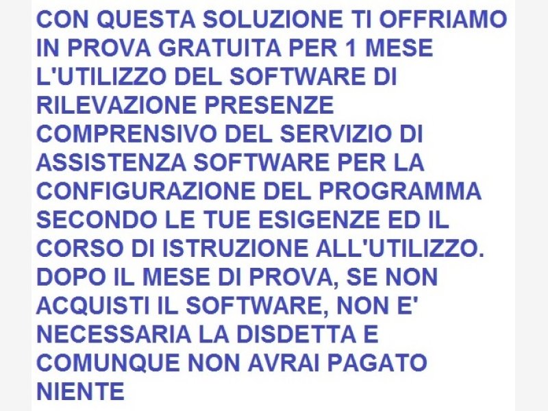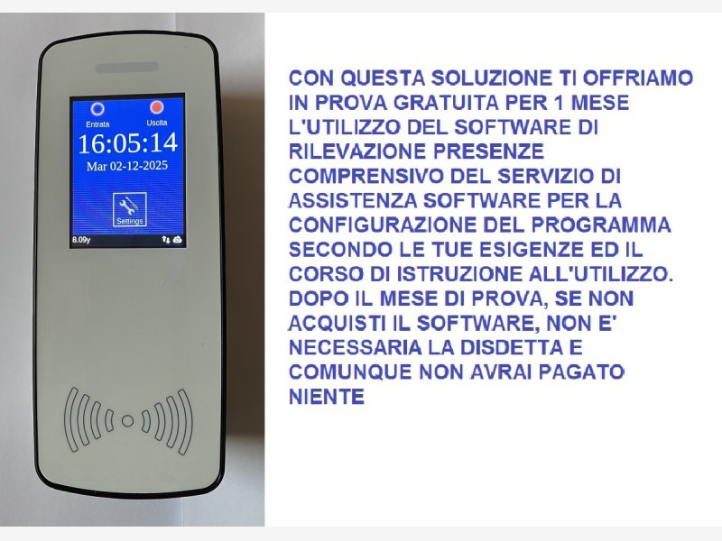 Le presenze del personale saranno registrate attraverso l'utilizzo di una timbratrice fissa per mezzo di una tessera RFID 125KHz o Mifare/NFC 13,56MHz. I dipendenti effettueranno la timbratura avvicinando la tessera, loro associata, al dispositivo che invierà i dati via WI-FI o Ethernet.